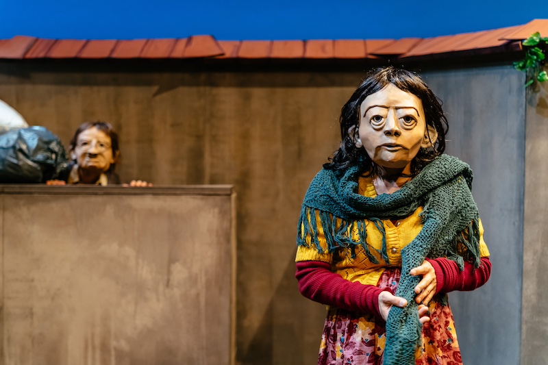 令人惊喜的是,三位演员不靠任何台词,仅靠肢体变化,就强有力地转换着不同身份性格的人物,从谨小慎微的酒店经理、大腹便便的守门人、忧伤的孕妇,到慌里慌张的厨师,每一个巨大的面具下,都是他们对不同人物的精准把握,投注不同的情感与表达。