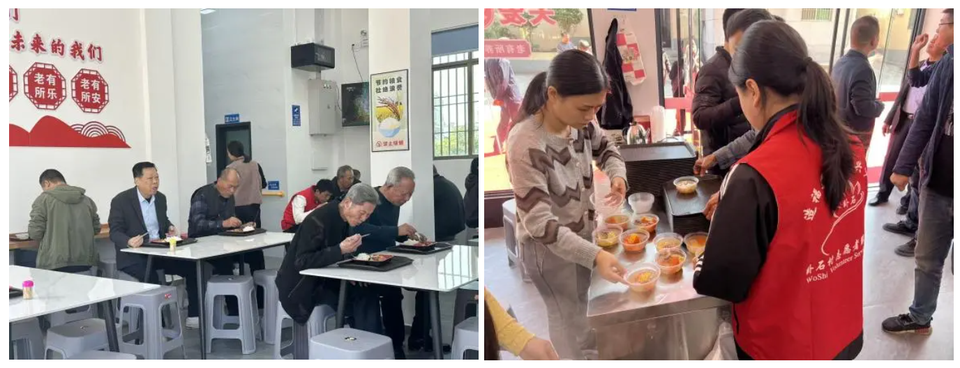 项目的起点,源于卧石村在常态化开展关爱走访时,听到部分老人反映“做饭难、吃饭愁”的问题,意识到这是一个共性需求,立即将此作为重点民生项目,提上工作日程。在严格遵循“四议两公开”程序审议及上级部门同意支持后,卧石村长者饭堂建设项目正式启动。项目确立以来,得到各相关部门的鼎力支持,村内热心人士闻讯后也纷纷慷慨解囊,踊跃捐赠助力饭堂建设。经过3个月的紧张施工与改造,原本闲置的公益用房焕然一新,配备了适老化餐桌椅、防滑地砖等设施,成为可同时容纳40人舒适就餐的饭堂。目前,饭堂已配备工作人员5名、招募志愿者6名,将始终秉持“营养、安全、可口、实惠”的服务原则,为长者设计营养均衡、软烂可口的菜单,为特殊老人提供送餐服务,切实保障老年人膳食营养均衡。