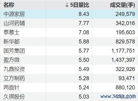 7只个股5日量比超过5倍7只个股5日量比超过5倍